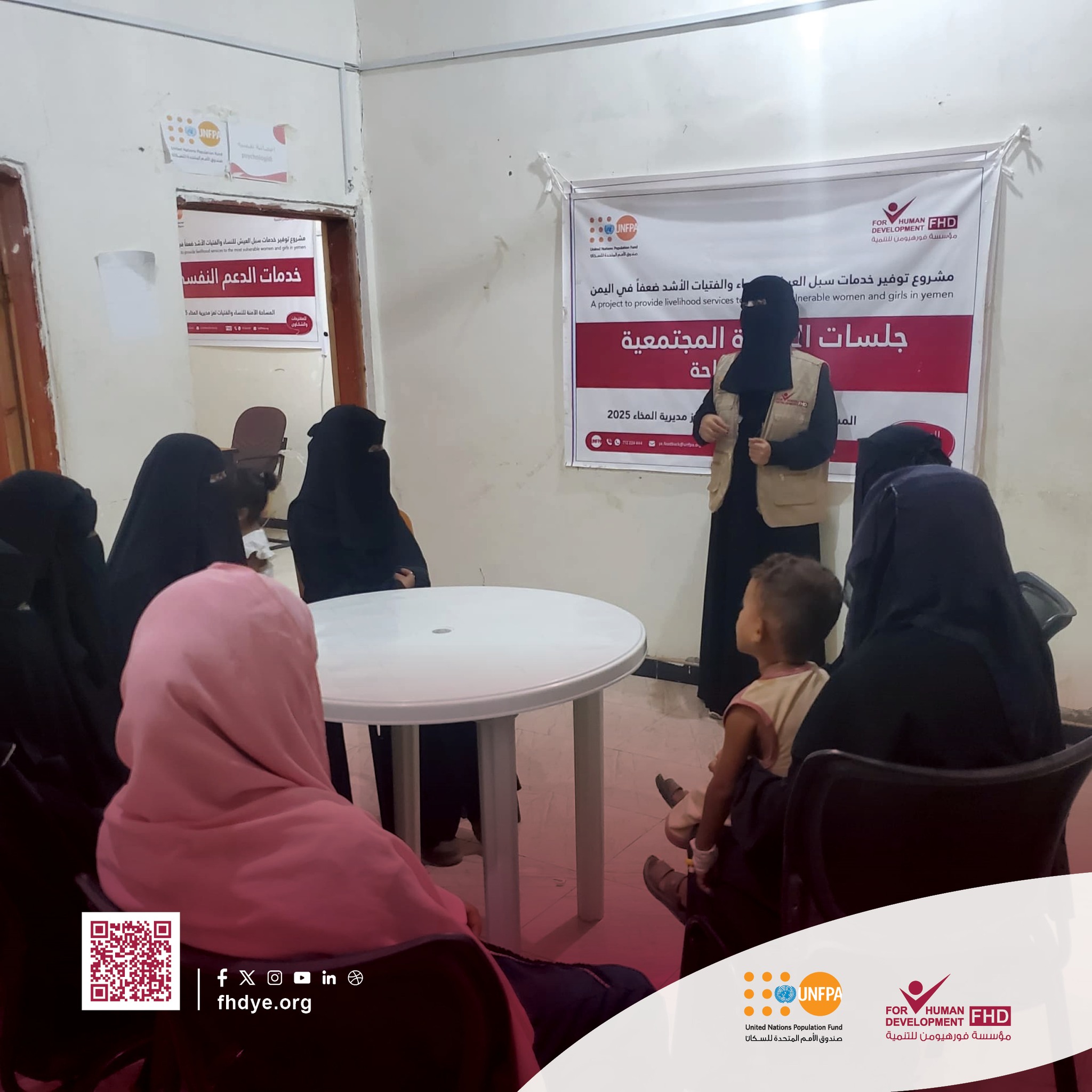 ضمن مشروع توفير خدمات سبل العيش للنساء والفتيات الأكثر ضعفاً في اليمن، نفّذت مؤسسة فورهيومن للتنمية FHD جلسة توعية مجتمعية...
