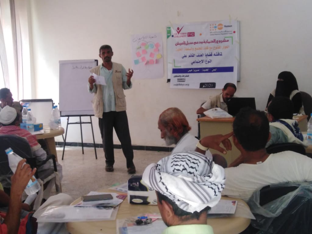 كما تم تم فتح باب النقاش والحوار للمشاركين حول المشاكل الاجتماعية المتصلة بقضايا العنف القائم على النوع الاجتماعي والتي يعاني منها أهالي مديرية حيس.