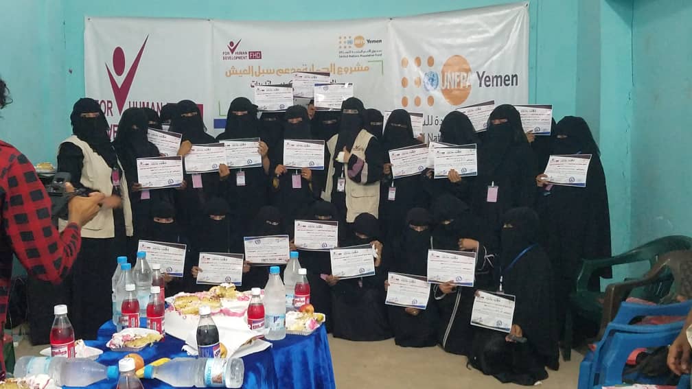 اختتم مشروع الحماية ودعم سبل العيش الذي تنفذه مؤسسة فورهيومن للتنمية FHD بتمويل من صندوق الامم المتحدة للسكان UNFPA الدورات التدريبية في المهارات الحياتية وسبل العيش لمستفيدات الربع الثالث من نساء وفتيات مديرية حيس
