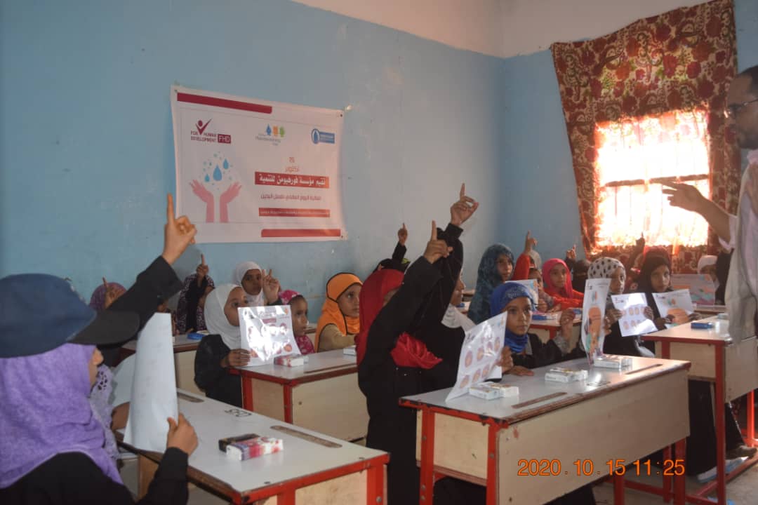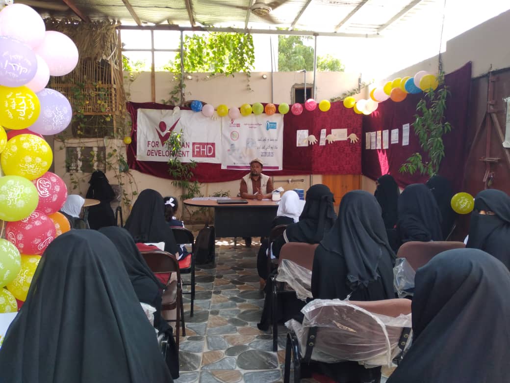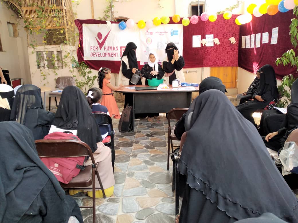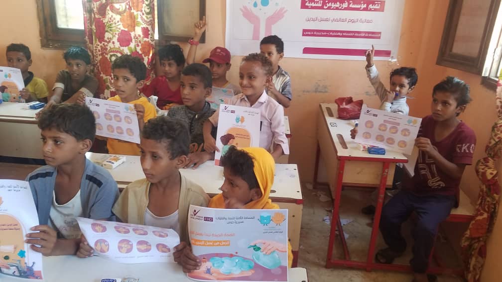 نفذت مؤسسة فورهيومن للتنمية باليوم العالمي لغسل اليدين الموافق 15/أكتوبر فعاليات وأنشطة توعوية وترفيهية للنساء والأطفال بمقر المساحات الآمنة بمديريتي حيس والخوخة وبمعهد تهامة