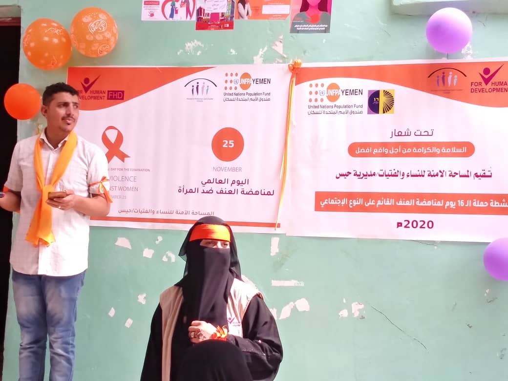 دشنت مؤسسة فورهيومن للتنمية يوم25نوفمبر حملة 16 يوم لمناهضة العنف القائم على النوع الاجتماعي بمقر المساحات الآمنة بمحافظة الحديدة مديريتي حيس والخوخة حيث تم تنفيذ جلسات توعوية وتعريفية بالحملة ومسرحيات ومسابقات تشجيعية.