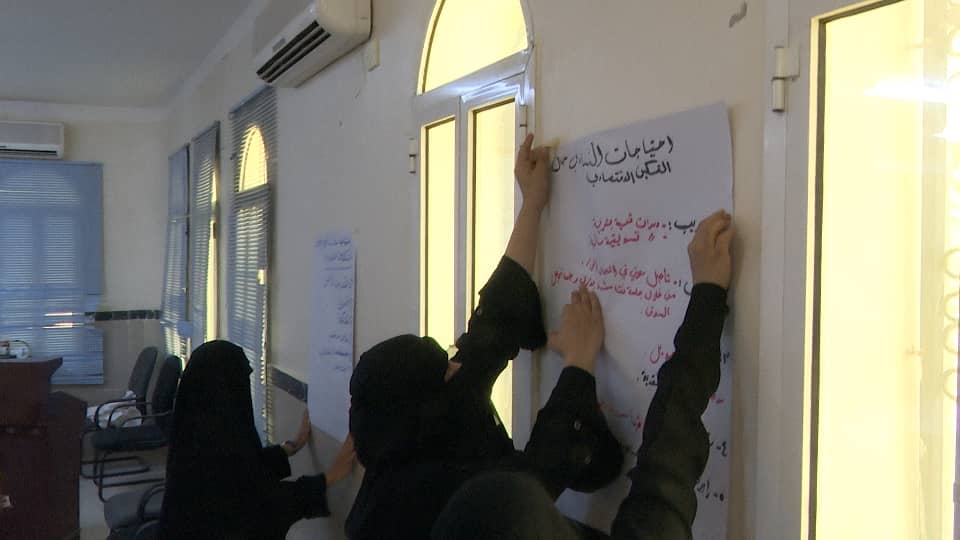 ورشة عمل مناصرة مع معايير المجتمع لأهداف وأنشطة المشروع بحضور السلطة المحلية والمنظمات العاملة في المنطقة والجهات المعنية مع اجراء نقاش بؤري مركز حول احتياجات النساء في مجال التمكين الاقتصادي.