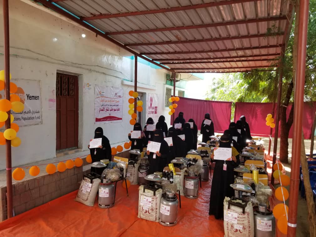 قدمت مؤسسة فورهيومن للتنمية منح سبل العيش للنساء المستفيدات وهي عبارة عن حقيبة متكاملة لصناعة الخضاب والحناء لعدد 15 مستفيدة من نساء مديرية حيس.