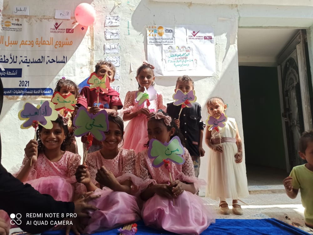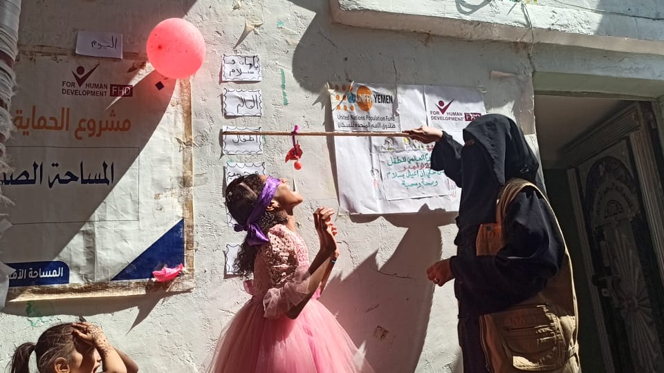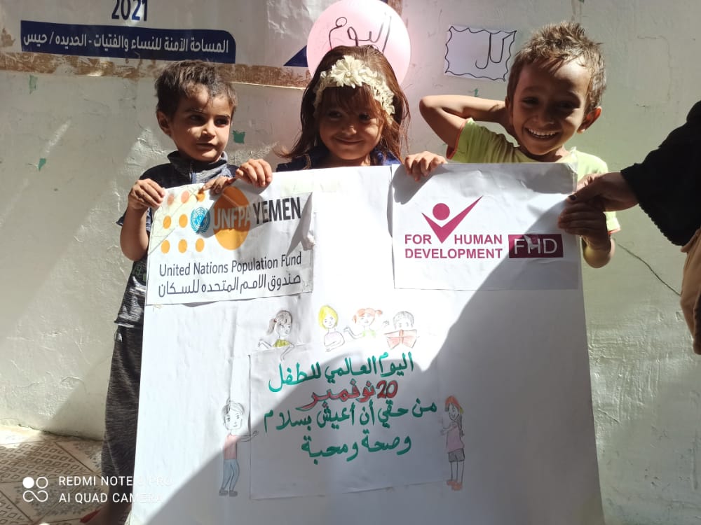 أقامت مؤسسة فور هيومن للتنمية في اليوم العالمي للطفل فعالية وأنشطة توعوية وترفيهية للأطفال بمقر المساحة الآمنة للنساء والفتيات في مديرية حيس - الحديدة