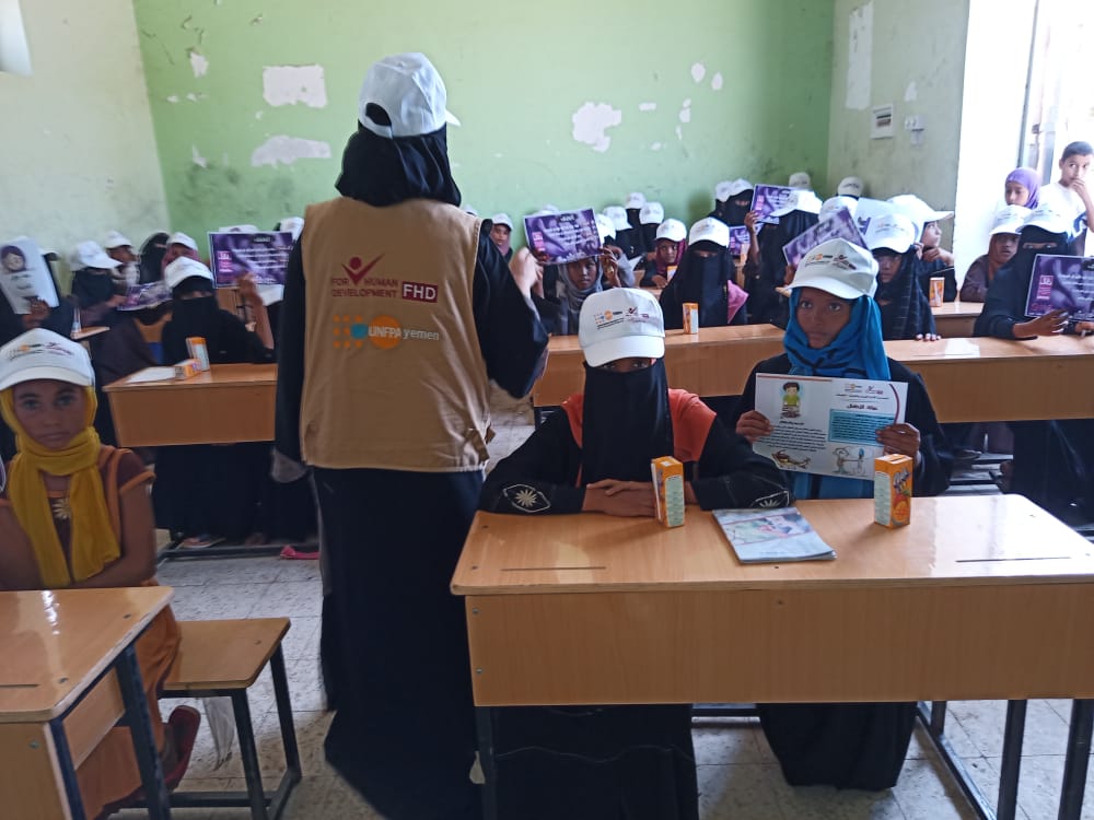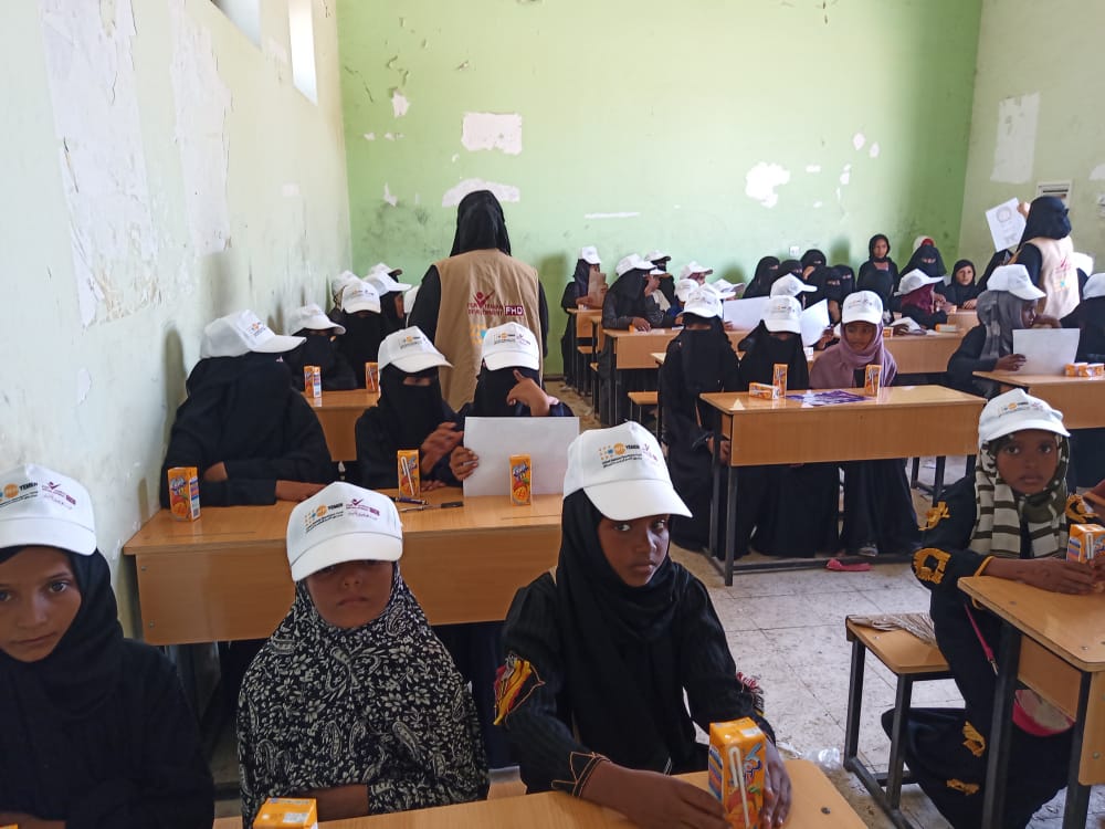 استهدفت مؤسسة فورهيومن للتنمية من خلال مشروع المساحة الآمنة في الحديدة مدارس المخيمات التي تعج بالفتيات وذلك بالعديد من الأنشطة النوعية والترفيهية وتوزيع قبعات.