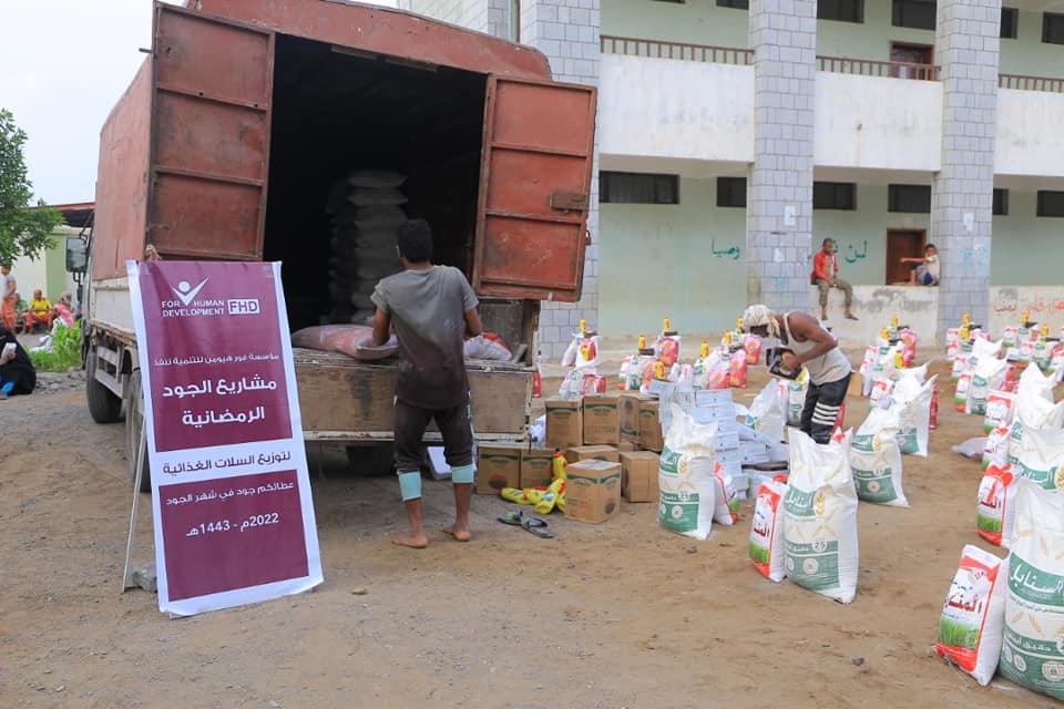 نفذت مؤسسة فورهيومن للتنمية مشروع توزيع السلال الغذائية في شهر رمضان للأسر الفقيرة والنازحة بعدة محافظات يمنية
