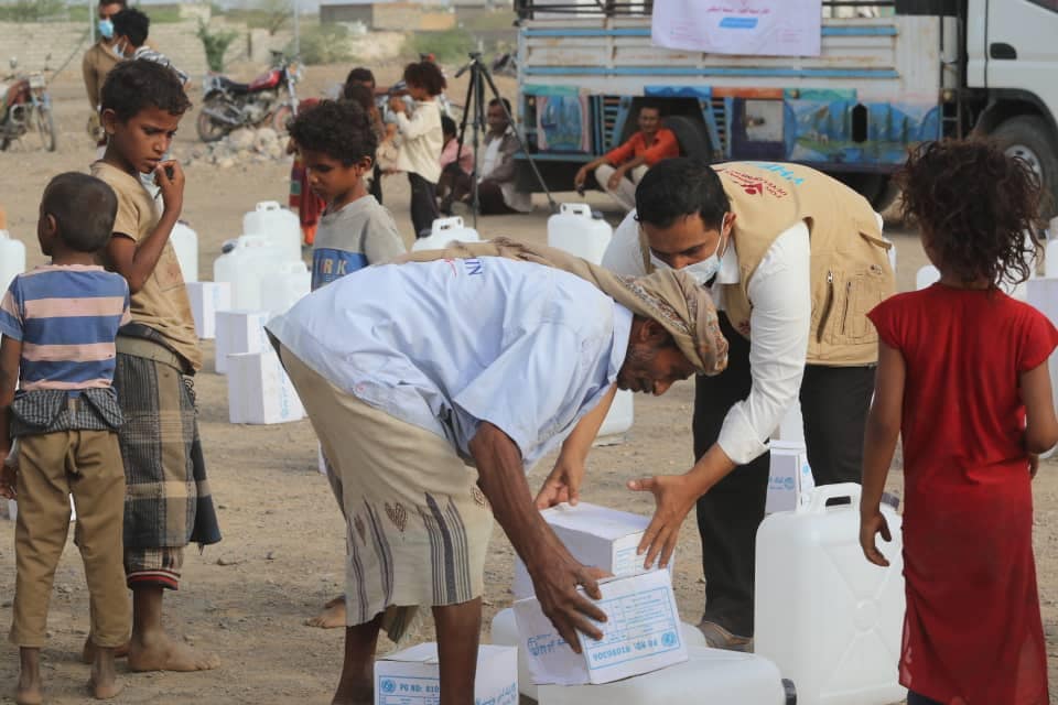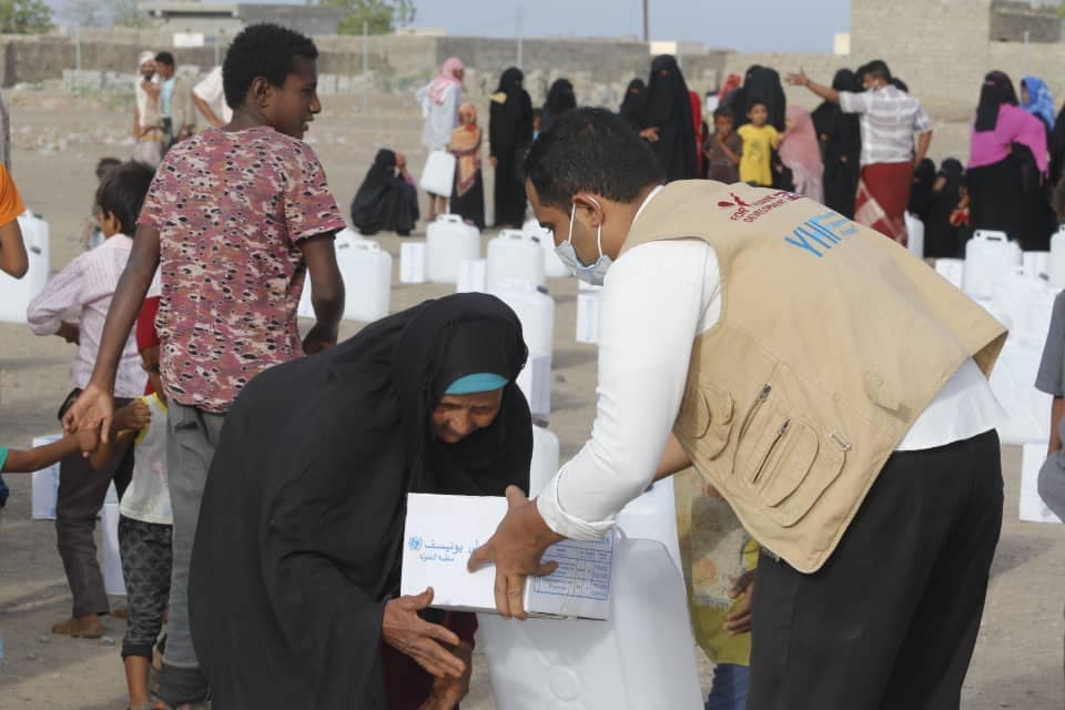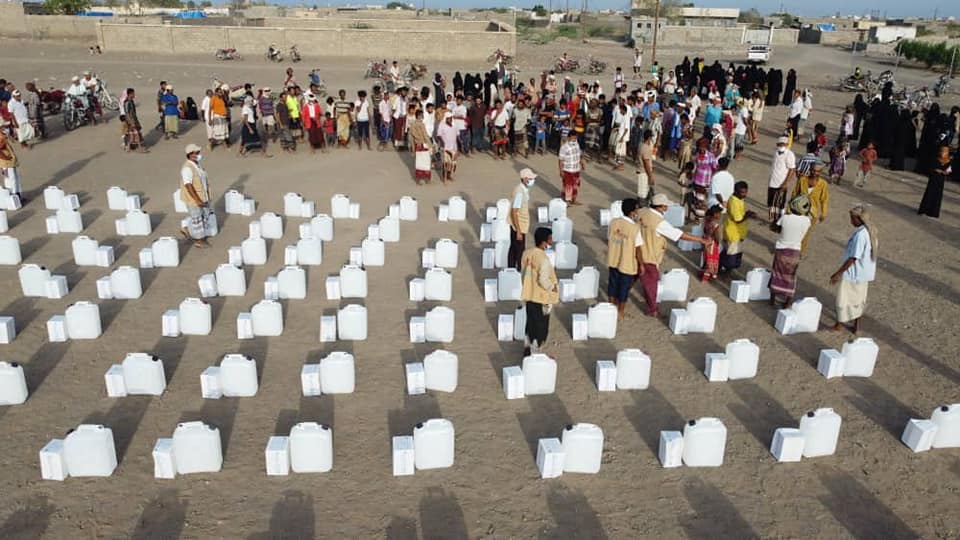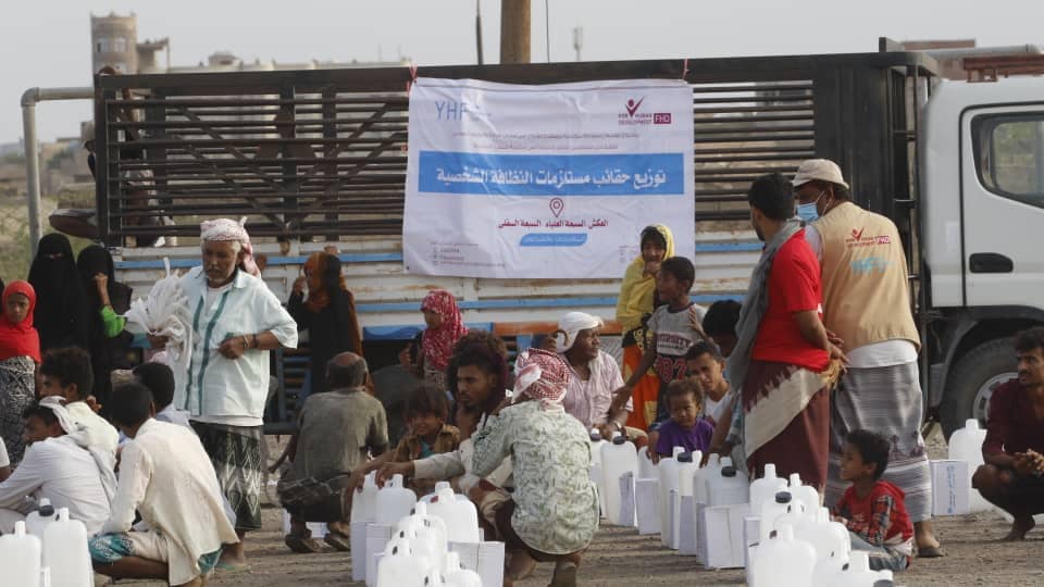 توزيع 1170حقيبة نظافة ودبات مياه لأهالي مديرية حيس (الحديدة) منطقتي السبعتين والعكش