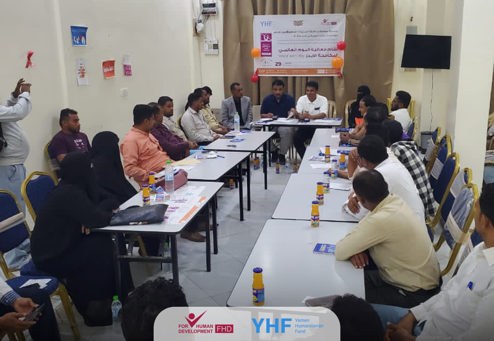 بمناسبة #يوم_العالمي_للايدز اقامت مؤسسة فورهيومن للتنمية FHD وبدعم وتمويل من صندوق التمويل الانساني في اليمن YHF في مساحة مديرية الخوخة محافظة الحديدة