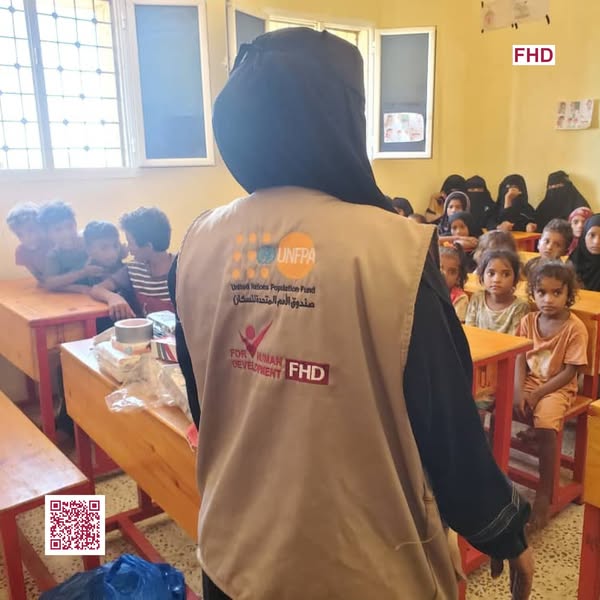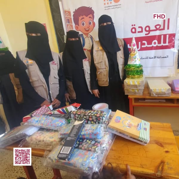 في أجواء مفعمة بالحماس والنشاط، نظمت مؤسسة فورهيومن للتنمية FHD عبر المساحة الآمنة للنساء والفتيات في #الخوخة، فعالية #العودة_إلى_المدرسة في مدرسة غمدان بمنطقة المحرق، بدعم من صندوق الأمم المتحدة للسكان UNFPA Yemen