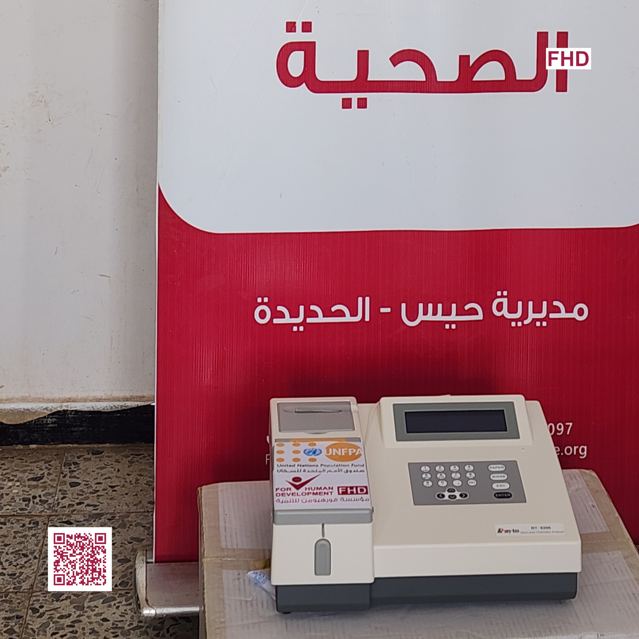 ضمن أنشطة مشروع دعم خدمات الصحة الإنجابية الممول من صندوق الأمم المتحدة للسكان UNFPA Yemen، قامت مؤسسة فورهيومن للتنمية FHD بتوريد أجهزة طبية، محاليل مخبرية، وأدوات نظافة إلى المرافق الصحية التالية: