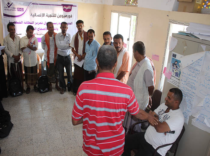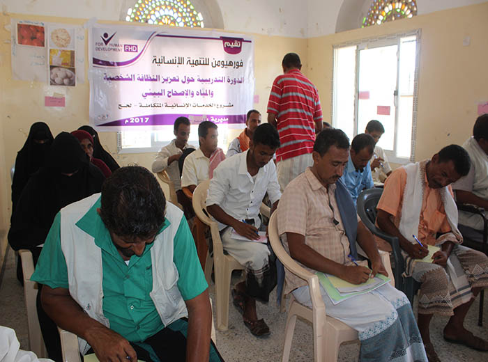 دورة تعزيز النظافة الشخصية والاصحاح البيئي للكادر الصحي والتي نفذتها مؤسسة فور هيومن ل17 متدرب ولمدة 4 أيام في مديرية المسيمير بمحافظة لحج تخللها زيارات إشرافية من قبل مدير مكتب الصحة ومسؤول العلاقات العامة بالمشروع.
