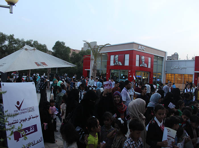 نفذت مؤسسة فور هيومن للتنمية 20حملة توعوية للوقاية من مرض الكوليرا واستهدفت فيه جميع فئات المجتمع اليمني (رجال- نساء –أطفال) في كلا من ( مترو مول – الواحة مول – الكنج مول – الزهراوي سنتر – مطاعم كنتاكي – حديقة الثورة - الجندول هايبر- الفضل مول- باب اليمن- حديقة الوحدة – المدينة السياحية – أروما كافيه – كريزي بارك – حديقة الزهراوي- سفير الشياكة – المحوى – حديقة هائل – هلا مول) وحققت الحملة نجاحا كبيرا وتفاعلا واسعا لدى جميع الحاضرين والمشاركين.