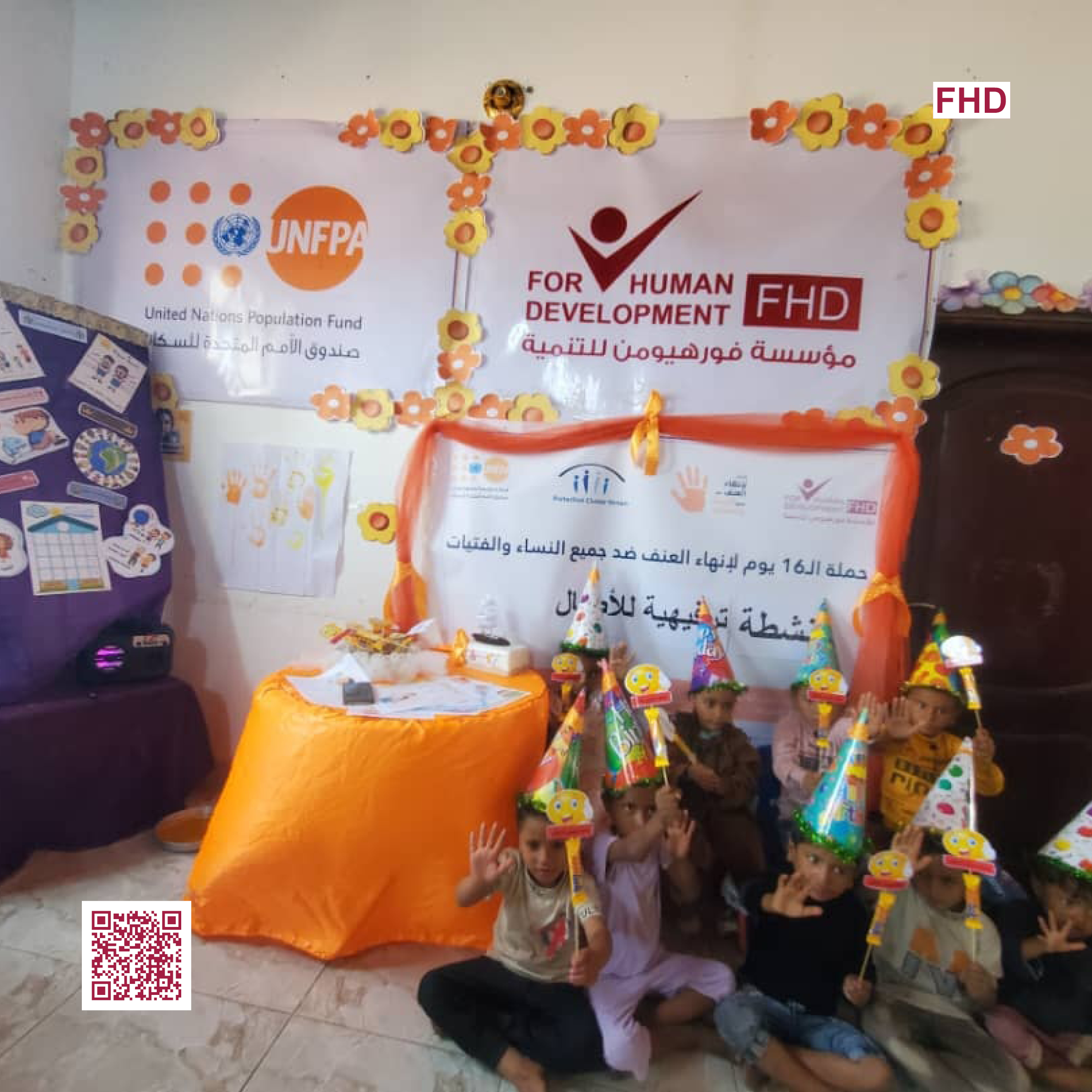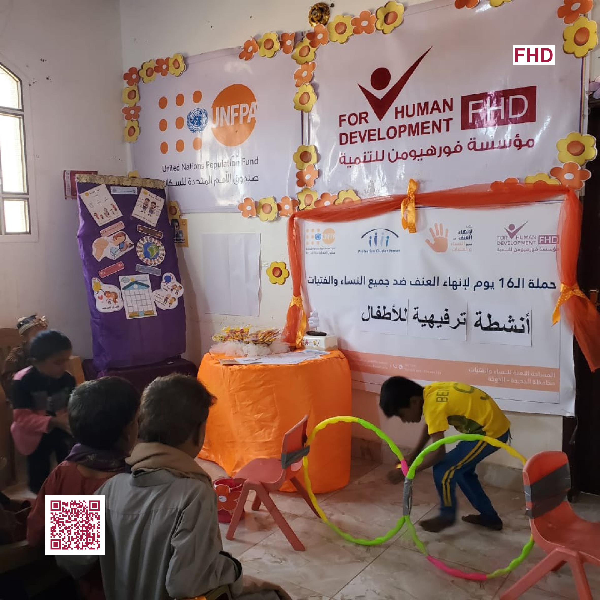 أقامت المساحة الآمنة للنساء والفتيات – #الخوخة، محافظة #الحديدة، فعالية ترفيهية للأطفال ضمن حملة 16 يوم لمناهضة العنف ضد المرأة، وذلك في إطار مشروع توفير خدمات سبل العيش للنساء والفتيات الأشد ضعفاً في اليمن، بتمويل من UNFPA in Yemen - صندوق الأمم المتحدة للسكان في اليمن وتنفيذ مؤسسة فورهيومن للتنمية #FHD.