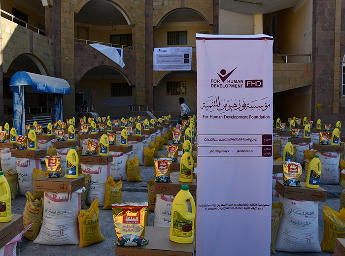 نفذت مؤسسة فورهيومن للتنمية في نهاية ديسمبر من العام 2018 مشروع توزيع السلال الغذائية للمتضررين من الأحداث الجارية في محافظة تعز .واستهدف المشروع الأسر الفقيرة والمحتاجة والمتضررة من الأحداث للمساهمة في التخفيف من معاناتهم وتحسين مستوى معيشتهم.وبلغ عدد المستفيدين من المشروع 159 أسرة متضررة بواقع 1,117فرد.