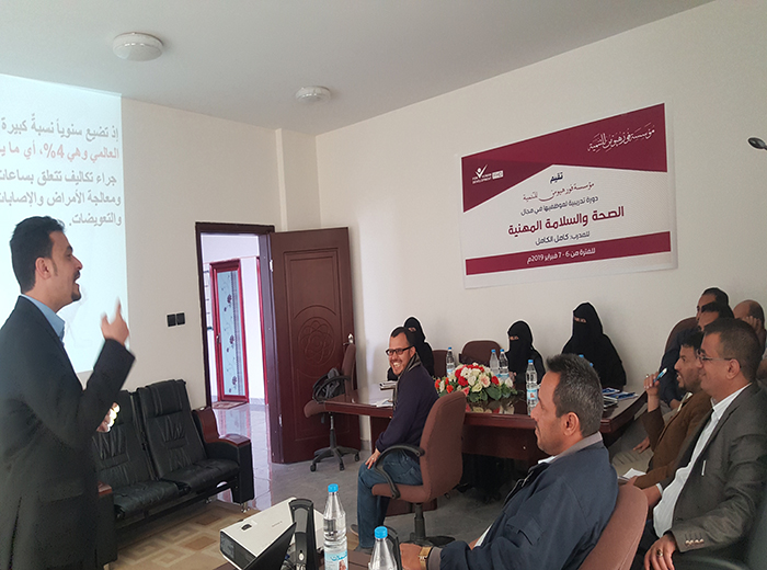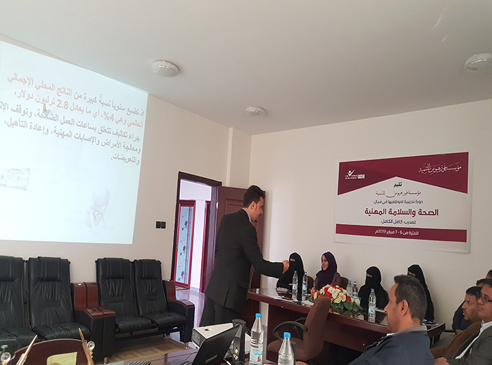 أقامت مؤسسة فورهيومن للتنمية اليوم الأربعاء6/فبراير دورة الصحة والسلامة المهنية لجميع موظفيها مع المدرب القدير كامل الكامل وهدفت الدورة الى غرس ثقافة الصحة والسلامة المهنية لدى الموظفين لتطبيق جميع اجراءات السلامة المهنية للوصول الى بيئة عمل آمنة وصحية.