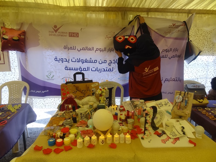 شاركت مؤسسة فورهيومن للتنمية ببازار اليوم العالمي للمرأة الذي نفذته منظمة PAUNF لدعم النساء المنتجات والمعيلات لأسرهن عبر اتاحة الفرصة لهن بعرض منتجاتهن وبيعها