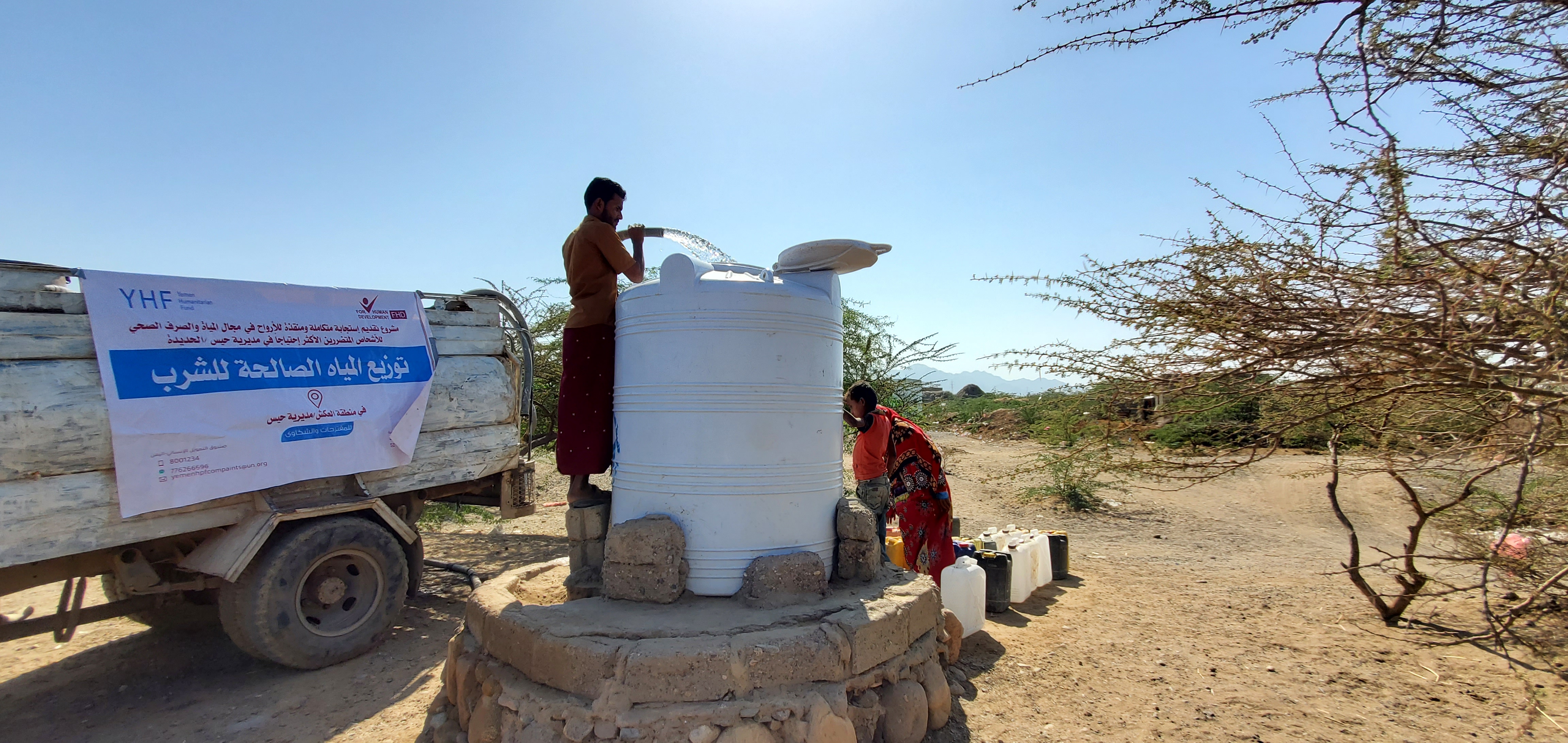 هدف المشروع إلى توفير المياه النظيفة لنحو 752 اسرة نازحة ومجتمع مضيف من خلال نقل المياه بالشاحنات الى نقاط التوزيع والمساهمة في تأمين استقرار الأسر من الهجرة الى مناطق أخرى والتي تسببها شحة المياه وذلك للتخفيف من معاناة النازحين والمواطنين...