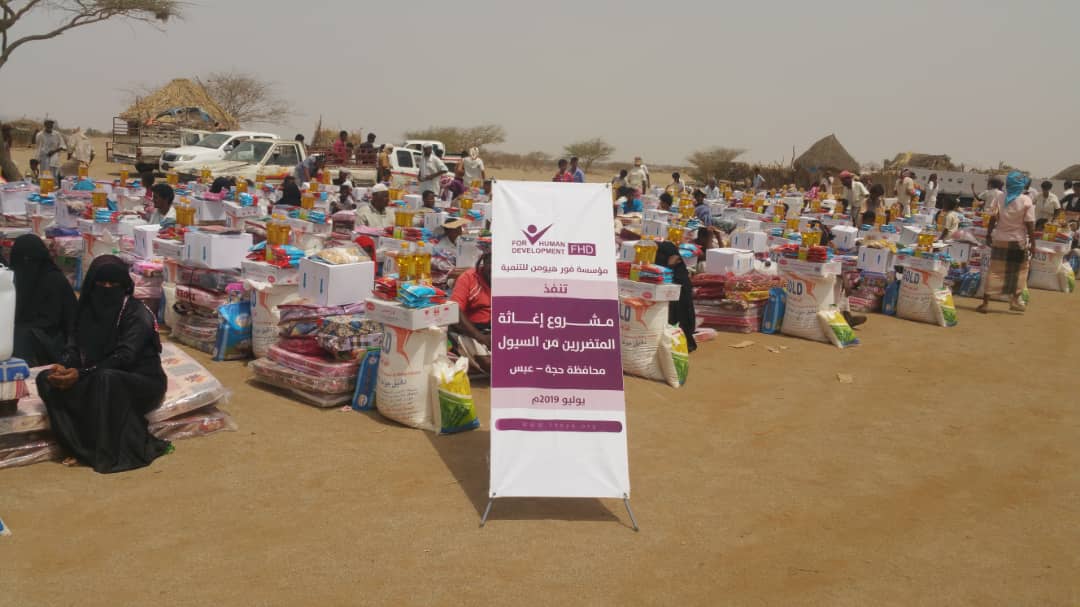 في أواخر شهر يوليو من العام 2019 استهدفت المؤسسة المتضررين من السيول بمحافظة حجة مديرية عبس بمشروع إغاثي تضمن توزيع مواد غذائية ومواد إيوائية للأسر المتضررة.
