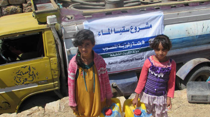 نفذت مؤسسة فورهيومن للتنمية مشروع سقيا الماء بدعم من فاعلات الخير من دولة الكويت في محافظة تعز حيث استفاد من المشروع 500 أسرة في منطقة التربة خلال شهر أكتوبر 2015 للنازحين من المديريات المنكوبة والمحاصرة جراء الحرب الدائرة والمستمرة لأكثر من ستة أشهر.